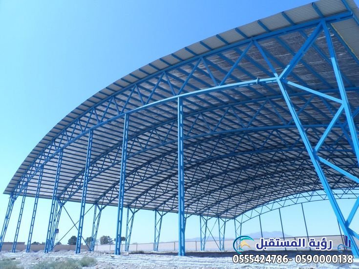 * تركيب الإطارات: تركيب الإطارات الفولاذية التي تشكل شكل الهنجر.