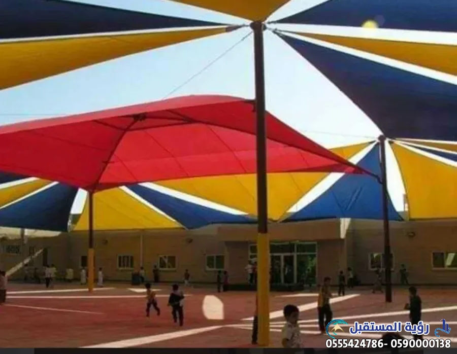 - مظلات متحركة (كهربائية أو يدوية): توفر مرونة في التحكم بكمية الظل المطلوبة.