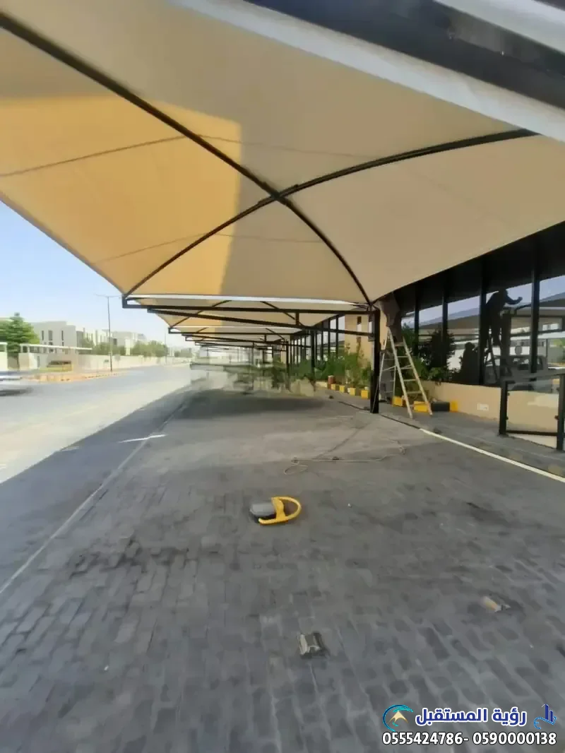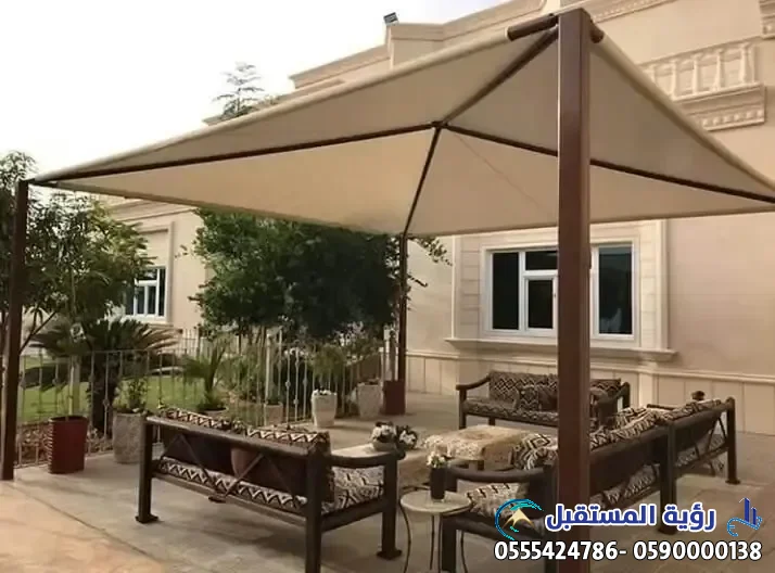 - مظلات ألومنيوم: خفيفة الوزن ومقاومة للصدأ وسهلة التركيب.