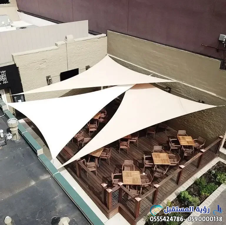- مظلات المشاريع التجارية: للمقاهي، المطاعم، والمحلات التجارية لتوفير مناطق جلوس خارجية مريحة للزبائن.