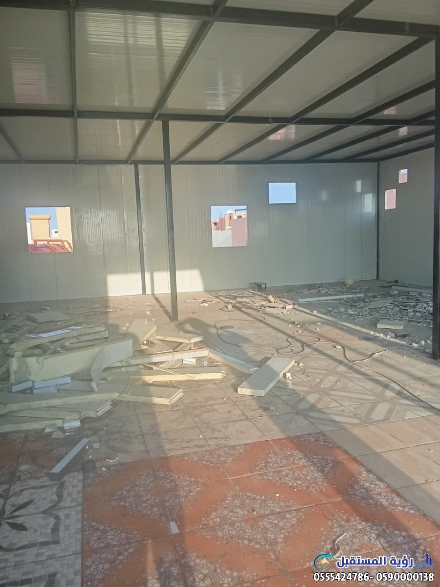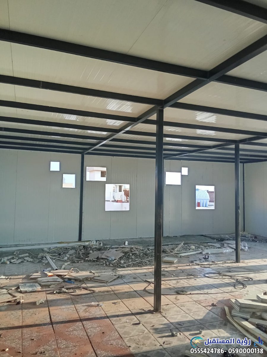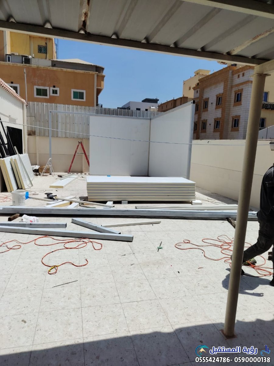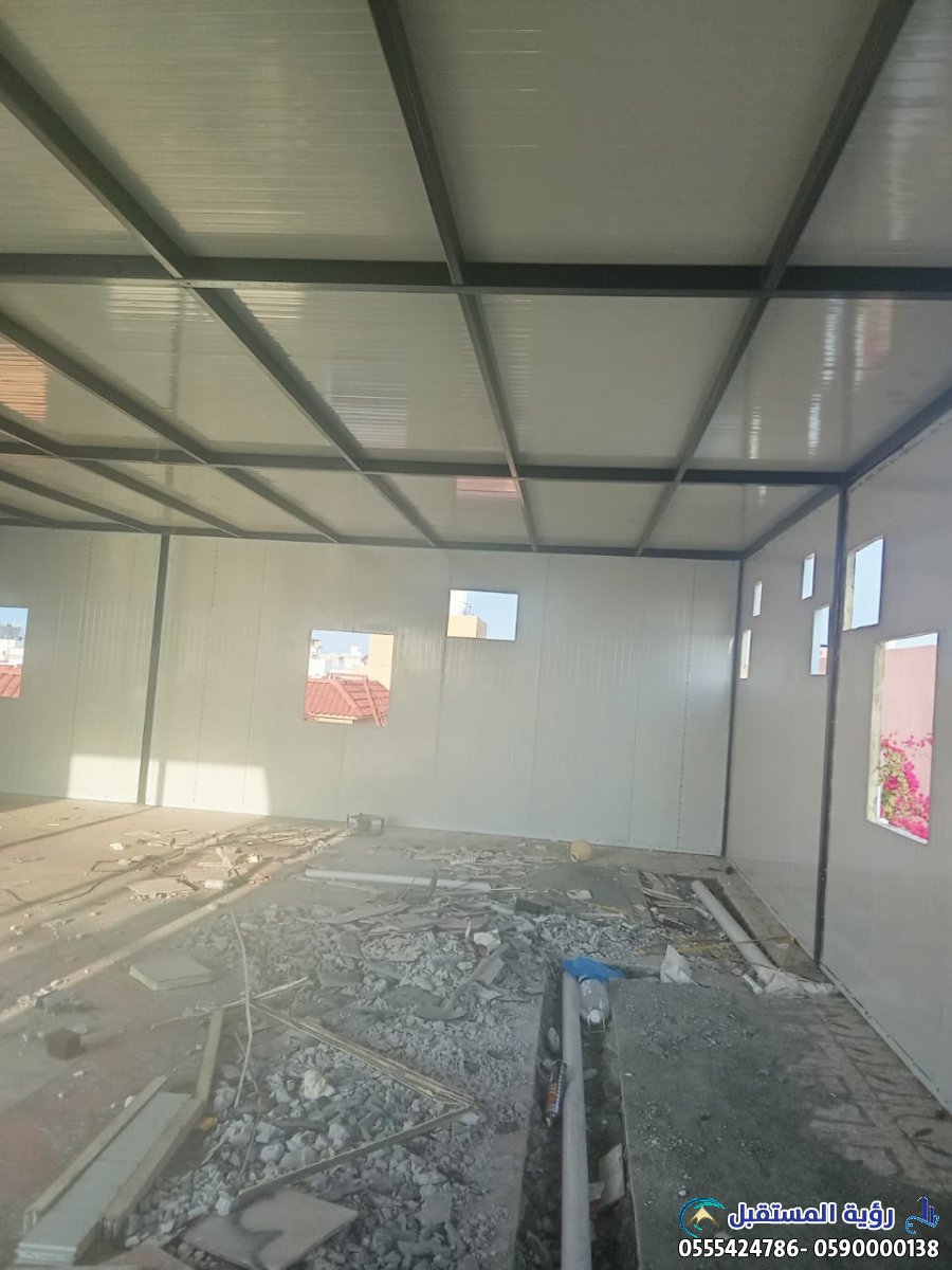 - العزل الحراري والصوتي الفائق: تُعد الألواح العازلة المكون الأساسي لهذه الملاحق. في بيئة المملكة العربية السعودية ذات درجات الحرارة المرتفعة، يضمن هذا العزل تقليل استهلاك الطاقة اللازم لتبريد المبنى بشكل كبير، مما يؤدي إلى فواتير كهرباء أقل وراحة أكبر للسكان. كما أنها توفر عزلًا صوتيًا ممتازًا، مما يجعلها مثالية للمكاتب، غرف النوم الإضافية، أو حتى الورش.