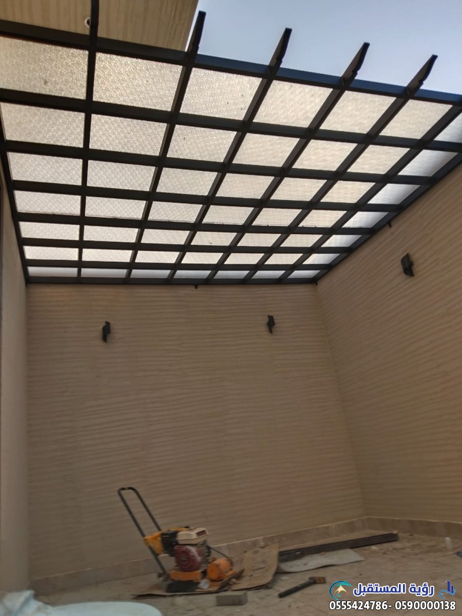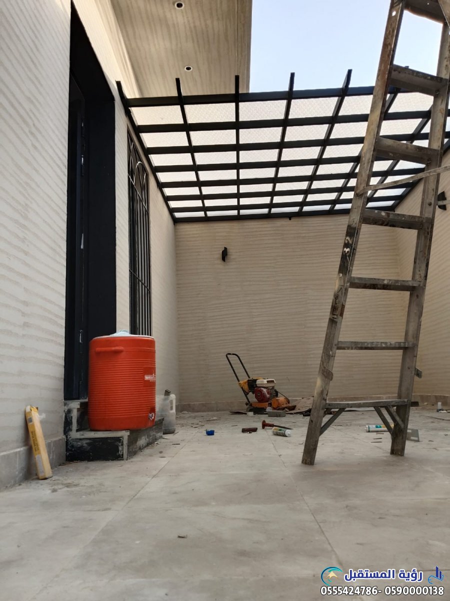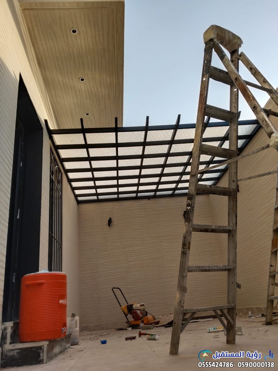 - مظلات البي في سي (PVC): تعتبر خيارًا اقتصاديًا وعمليًا، وهي مقاومة للماء والحريق وتتحمل الظروف الجوية القاسية.