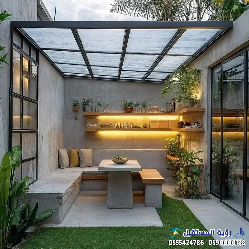 مناطق الشواء وتناول الطعام: تخصيص ركن للشواء أو مطبخ صغير خارجي هو إضافة عملية مثالية للتجمعات العائلية والاجتماعات.